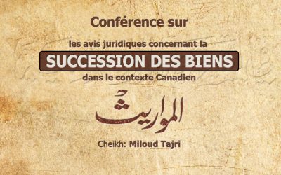 Conférence sur les avis juridiques concernant la succession des biens dans le contexte Canadien. Présentée par Cheikh : Miloud Tajri [...]